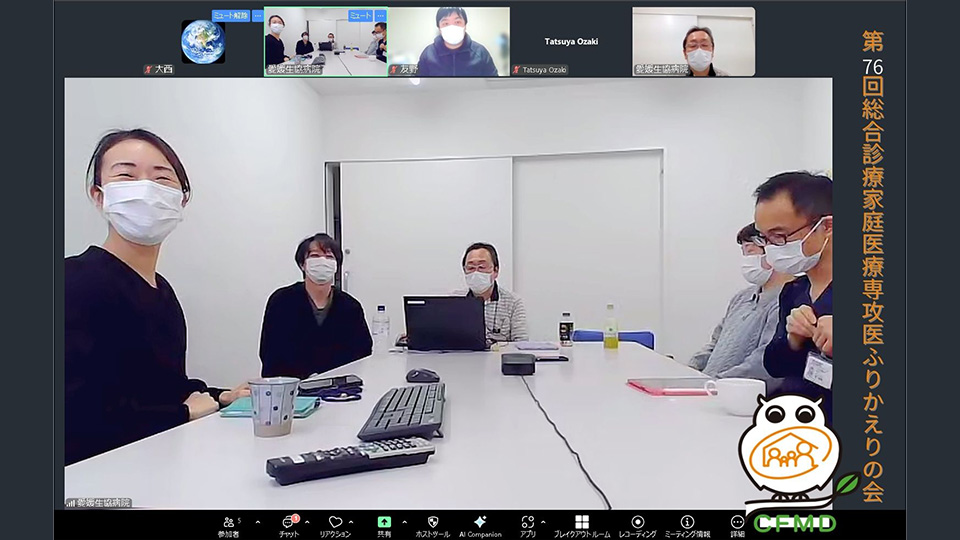 専攻医向けの振り返りの会(オンライン)では、先輩医師が家庭医療専攻医を手厚くサポートしている