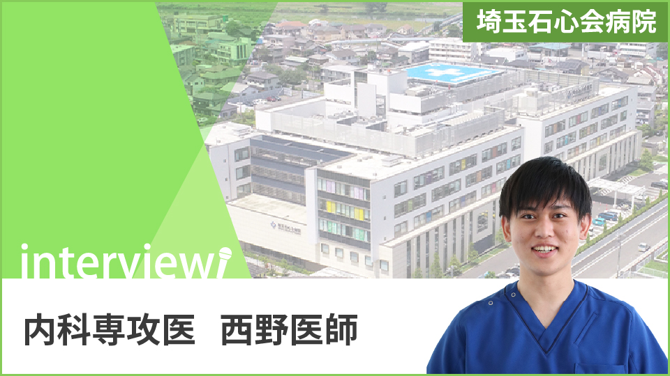 西野医師: 専攻医2年目となる来夏、外部研修を受ける予定です。2年上の先輩から良かったと聞いている埼玉医科大学国際医療センターや今年から新しく外部研修に加わった新久喜総合病院にも興味を持っています。