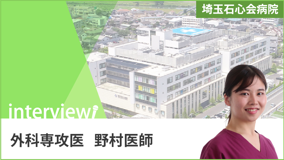 野村医師: 第一印象は「キレイな病院だな」ということ。見学時、偶然にも私と同じ外科を目指している研修医1年目の女性医師と会話した中で、当時埼玉石心会病院には外科専門研修プログラムがなく、先輩は、「この病院で外科の専攻医になれたらいいんだけどね」と言っていたことを今でも覚えています。